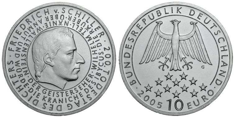 Fig. 7, 10 Euros 2005 Friedrich von Schiller, struck silver, 32 mm