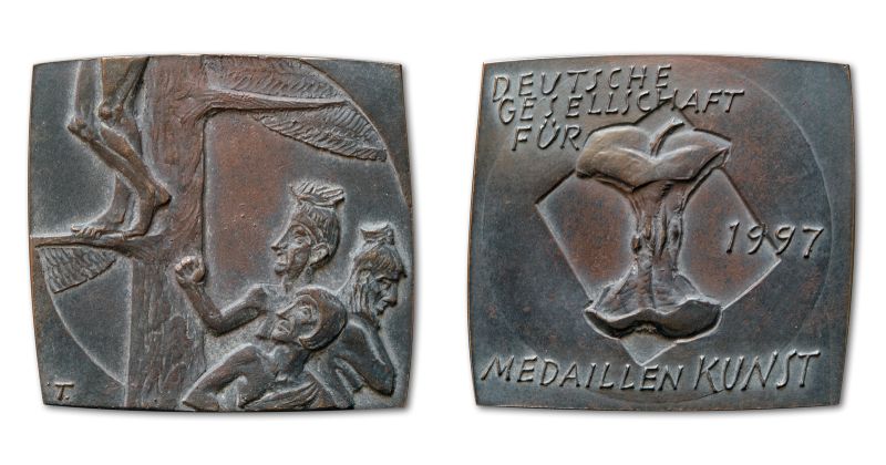 In 1997 T. presented his German Society for Medallic Art with an especially original annual medal. (Fig. 4) He remained true to himself as an occasional artistic “advocatus diaboli”, eternally negating and yet working good, to loosely quote Faust’s conversation with Mephistopheles in his, Faust’s, study.