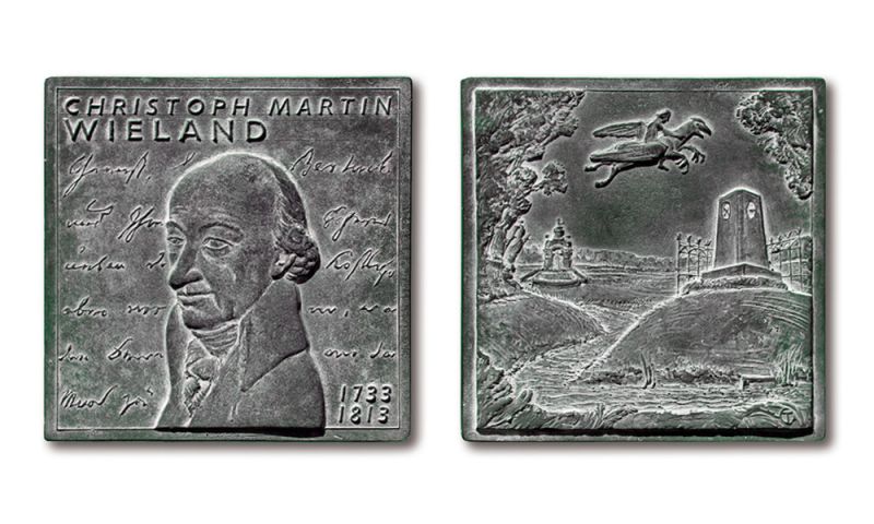 The medal was created in 2013 to commemorate the 200th anniversary of the death of poet Christoph Martin Wieland. Wieland was born in Oberholzheim near Biberach on 5 May 1733 and died in Weimar on 20 January 1813. He was one of the most important writers of the Enlightenment in the German-speaking world and one of the four representatives of Weimar Classicism, along with Goethe, Schiller and Herder the Elder.